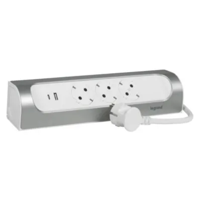 Ugaoni produžni blok sa 3 utičnice, sa USB tipom A i C za kuhinju, 1m