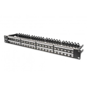 DIGITUS modularni patch panel, oklopljen, 48 portova, polje za nalepnicu, 1U, 19′ Rack Mount Boja crna RAL 9005